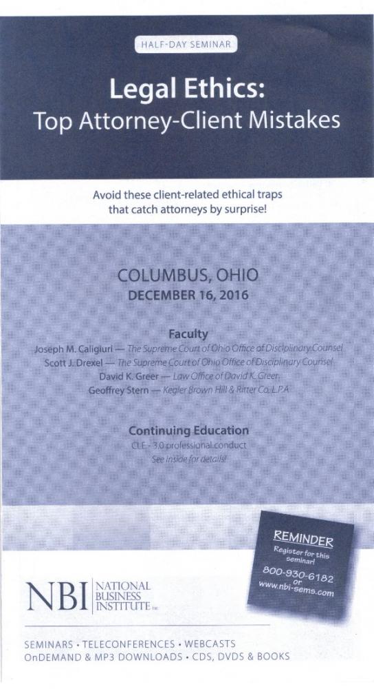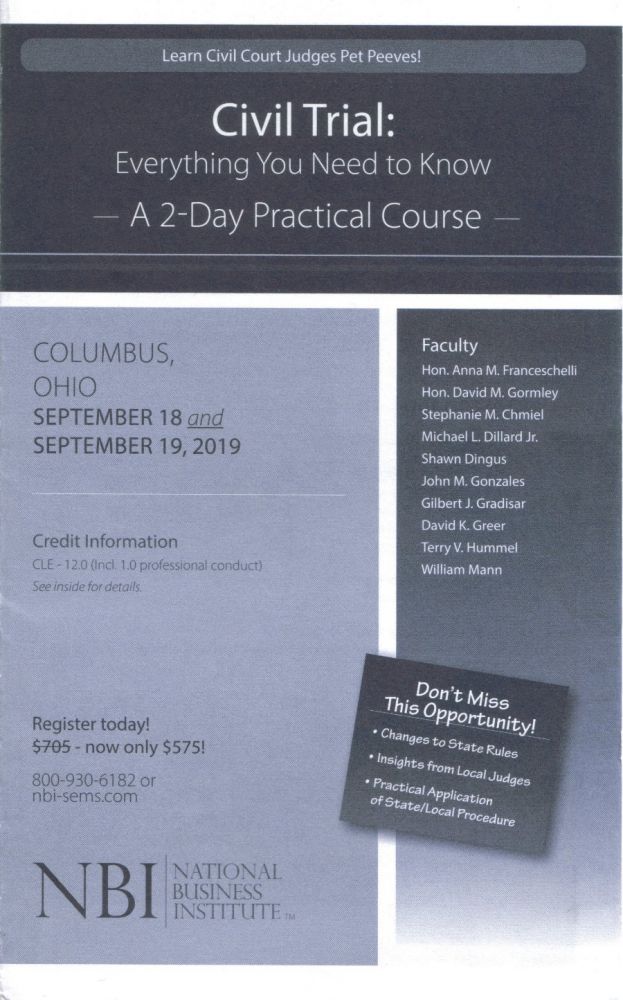 Garden Inn Columbus Airport. Attorney Greer was one of several distinguished faculty presenters at the seminar, which included the Hon. Judge John A. Connor of the
