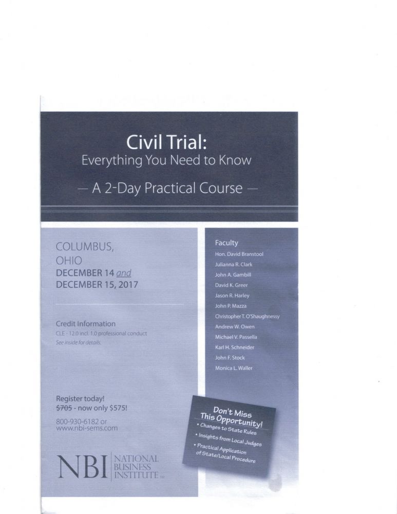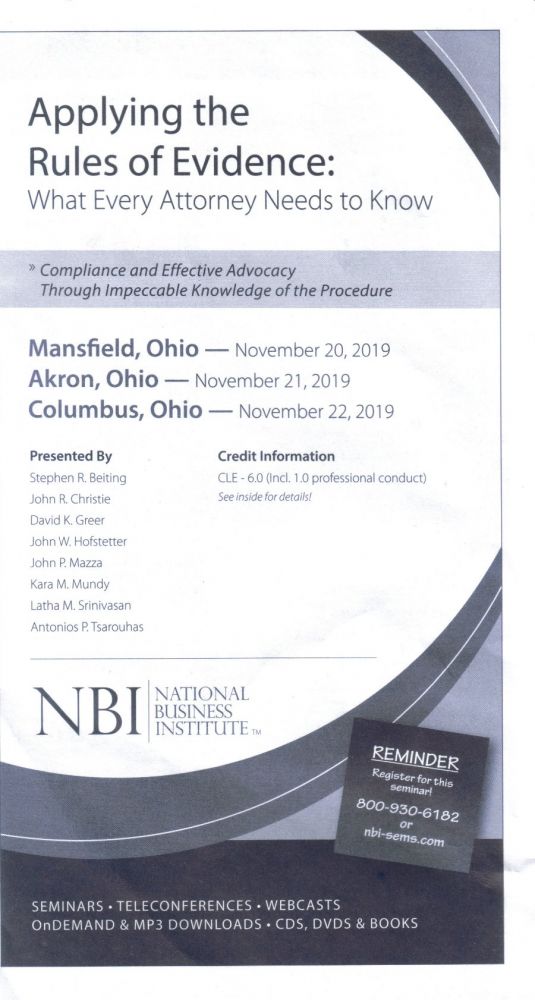 Ohio Appellate Practice: Real-World Tactics, seminar on September 18, 2013. The seminar was sponsored by the National Business Institute (NBI), and held at the Hilton